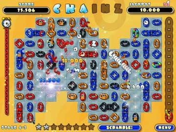 This game is link-matching madness with Chainz 2: Relinked. Rotate the colored links to make matches of three or more in Classic Mode. Pit your link-matching skills against the clock in Arcade Mode. Ponder every precious move in Strategy Mode. Twist your brain and clear all the links in Puzzle Mode. Add in awesome sound effects, a zippy new music score, and sensationally updated visuals, and Chainz 2: Relinked is sure to keep you chained to your seat!